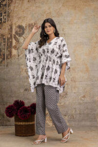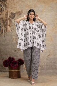 The perfect combination of style and comfort—this Kaftan Pajama Set is the perfect choice for everyday wear. Made from soft and skin-friendly fabric, this set is lightweight, breathable, and extremely comfortable. The loose-fitting kaftan-style top fits every body shape beautifully, giving you an elegant and luxurious look.