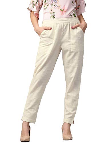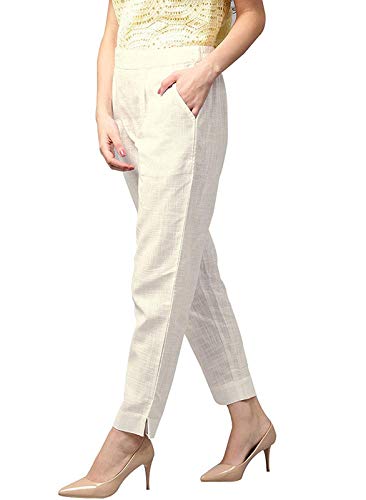 Women’s Regular Fit Solid Cotton Slub Ankle Length Regular Trouser Pant
